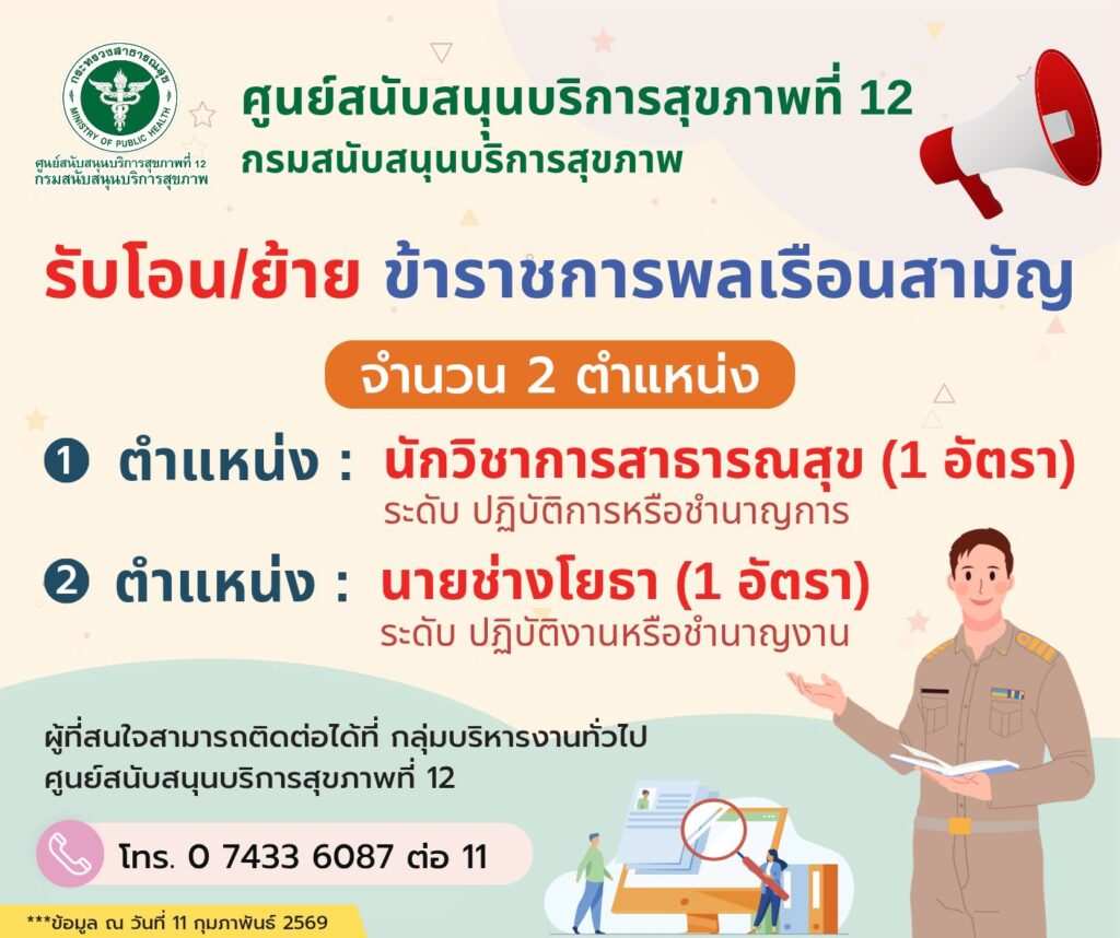 - นักวิชาการสาธารณสุข (1 อัตรา) ระดับปฏิบัติการ / ชำนาญการ