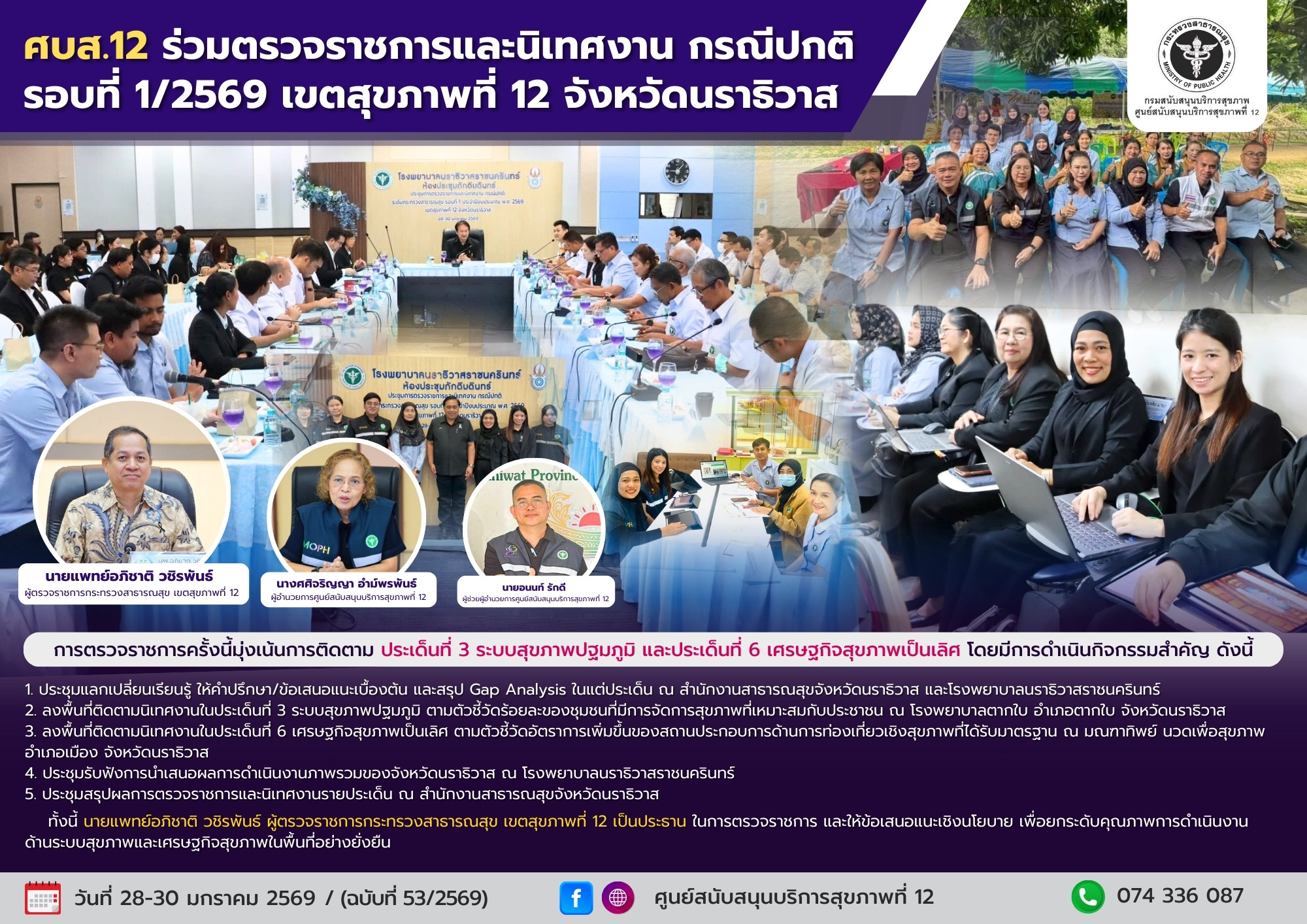 ศบส.12 ร่วมตรวจราชการและนิเทศงาน กรณีปกติ รอบที่ 1/2569 เขตสุขภาพที่ 12 จังหวัดนราธิวาส
