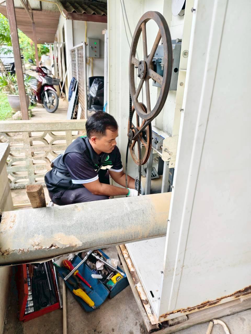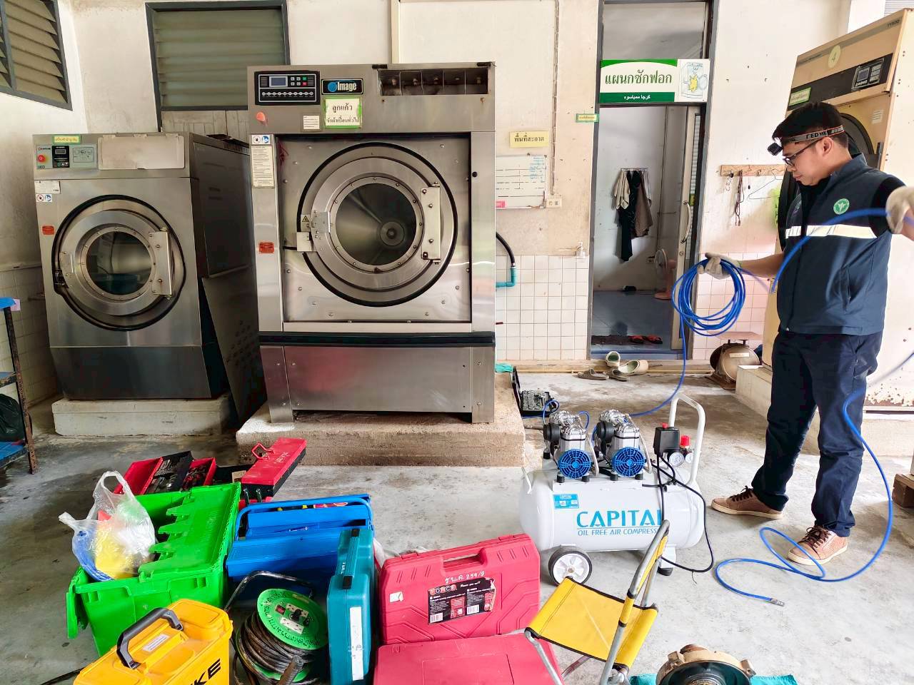 ซ่อมแซมและประกอบเครื่องซักผ้า ขนาด 50 ปอนด์ จำนวน 1 เครื่อง เพื่อให้กลับมาทำงานได้เต็มประสิทธิภาพ
