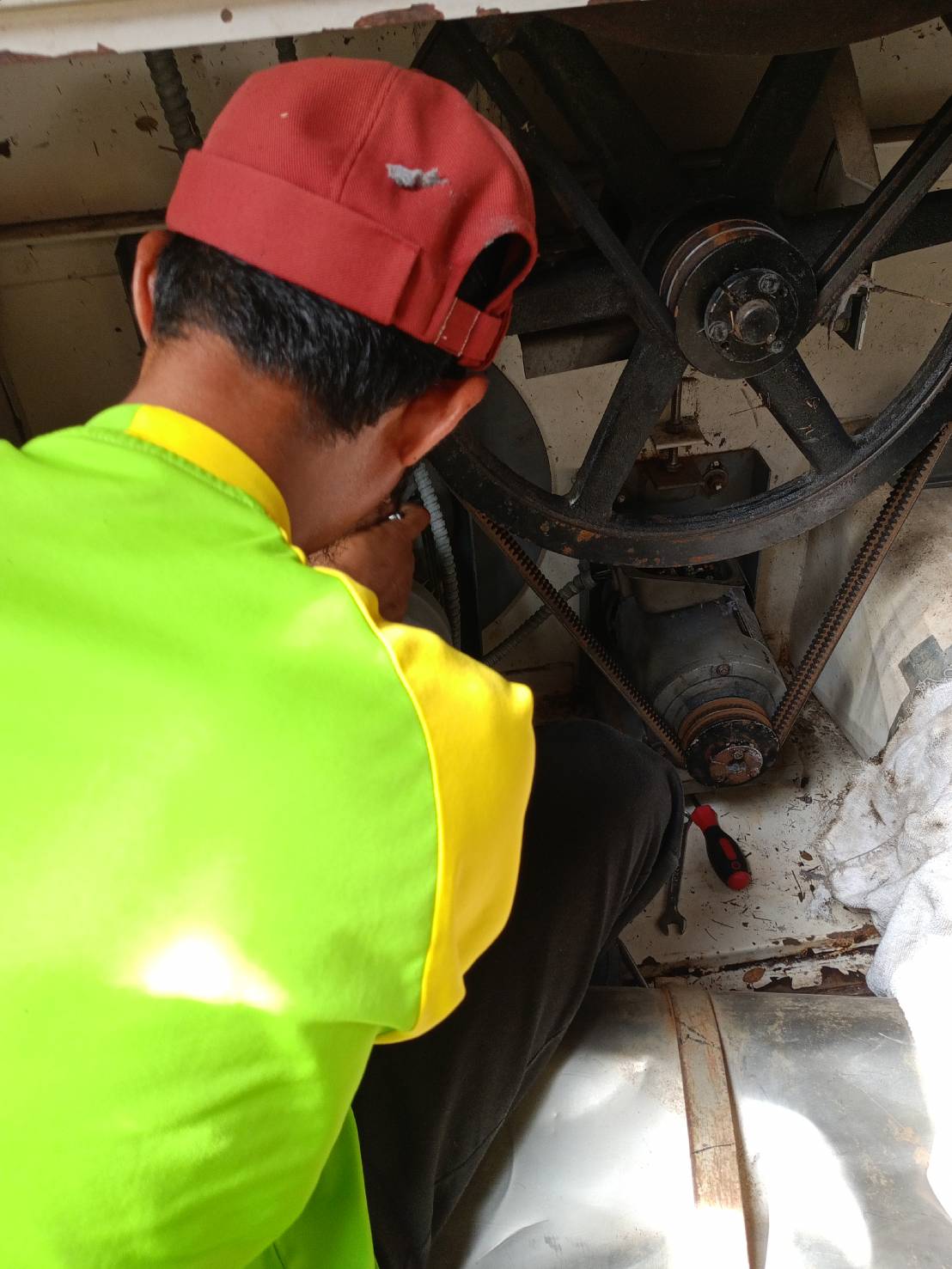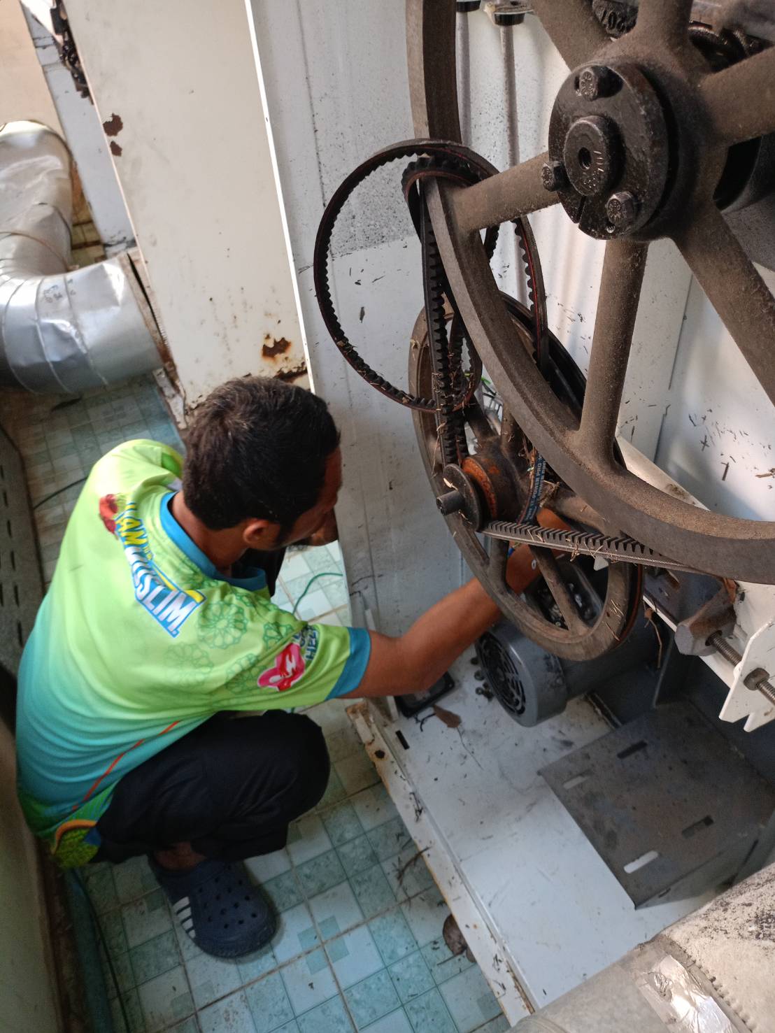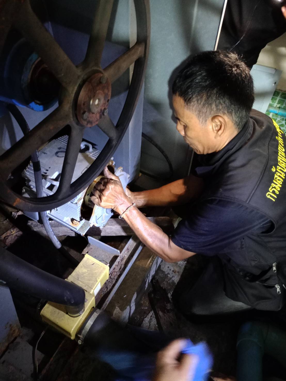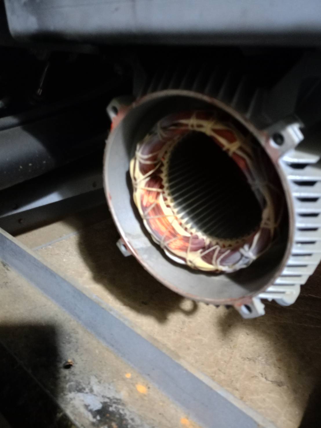 ดำเนินการถอดมอเตอร์เครื่องซักผ้าขนาด 125 ปอนด์ เพิ่มเติม เพื่ออบไล่ความชื้นและเตรียมเปลี่ยนตลับลูกปืน