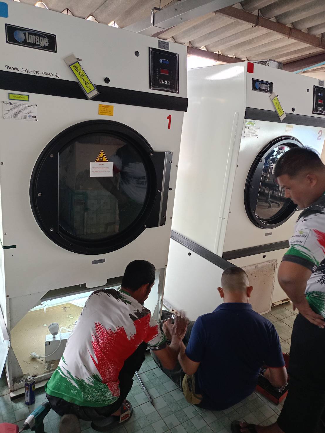 ซ่อมแซมและประกอบเครื่องอบผ้า ขนาด 50 ปอนด์ จำนวน 1 เครื่อง และเครื่องอบผ้า 70 ปอนด์ จำนวน 1 เครื่อง