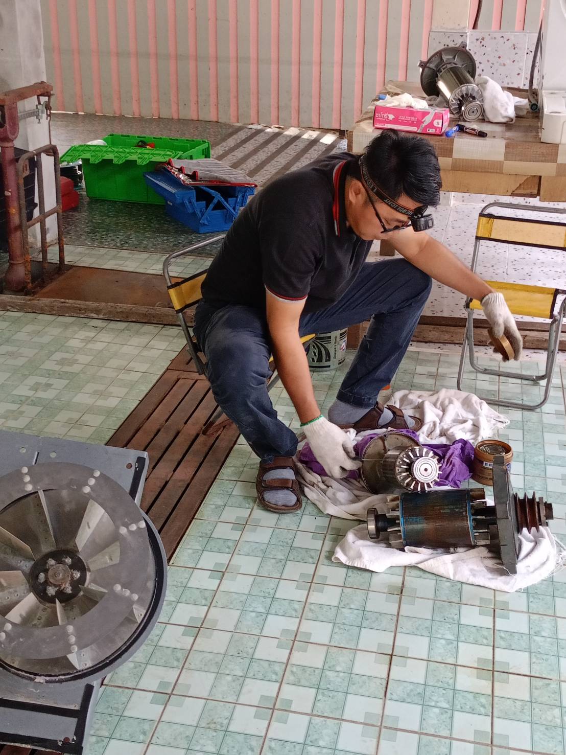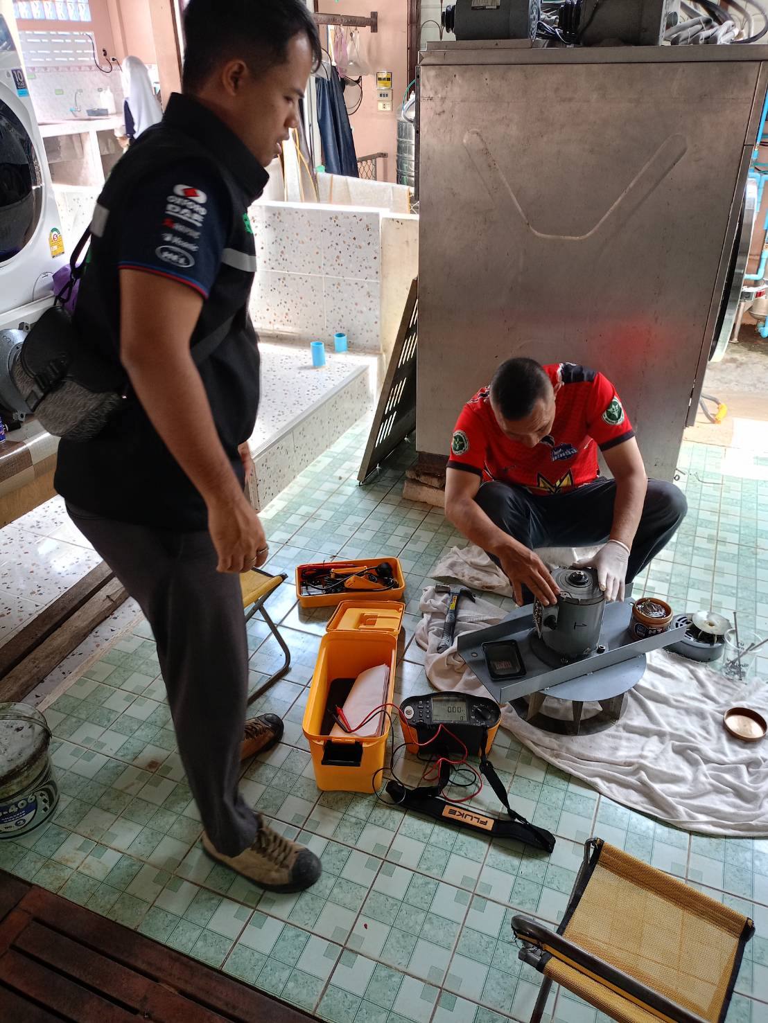 ถอดมอเตอร์เครื่องซักผ้าและเครื่องอบผ้า เพื่ออบไล่ความชื้นและทดสอบค่าความเป็นฉนวน