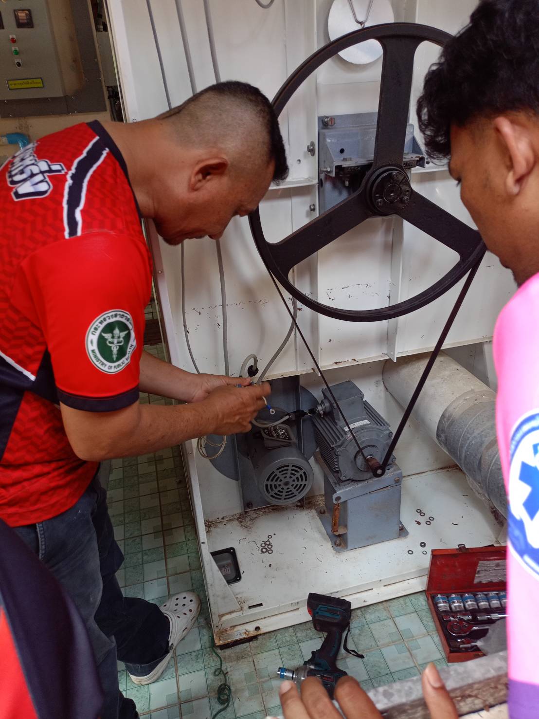- ถอดมอเตอร์เครื่องซักผ้า ขนาด 125 ปอนด์ อบไล่ความชื้น ประกอบและทดสอบ จำนวน 1 เครื่อง เครื่องทำงานปกติพร้อมใช้งาน