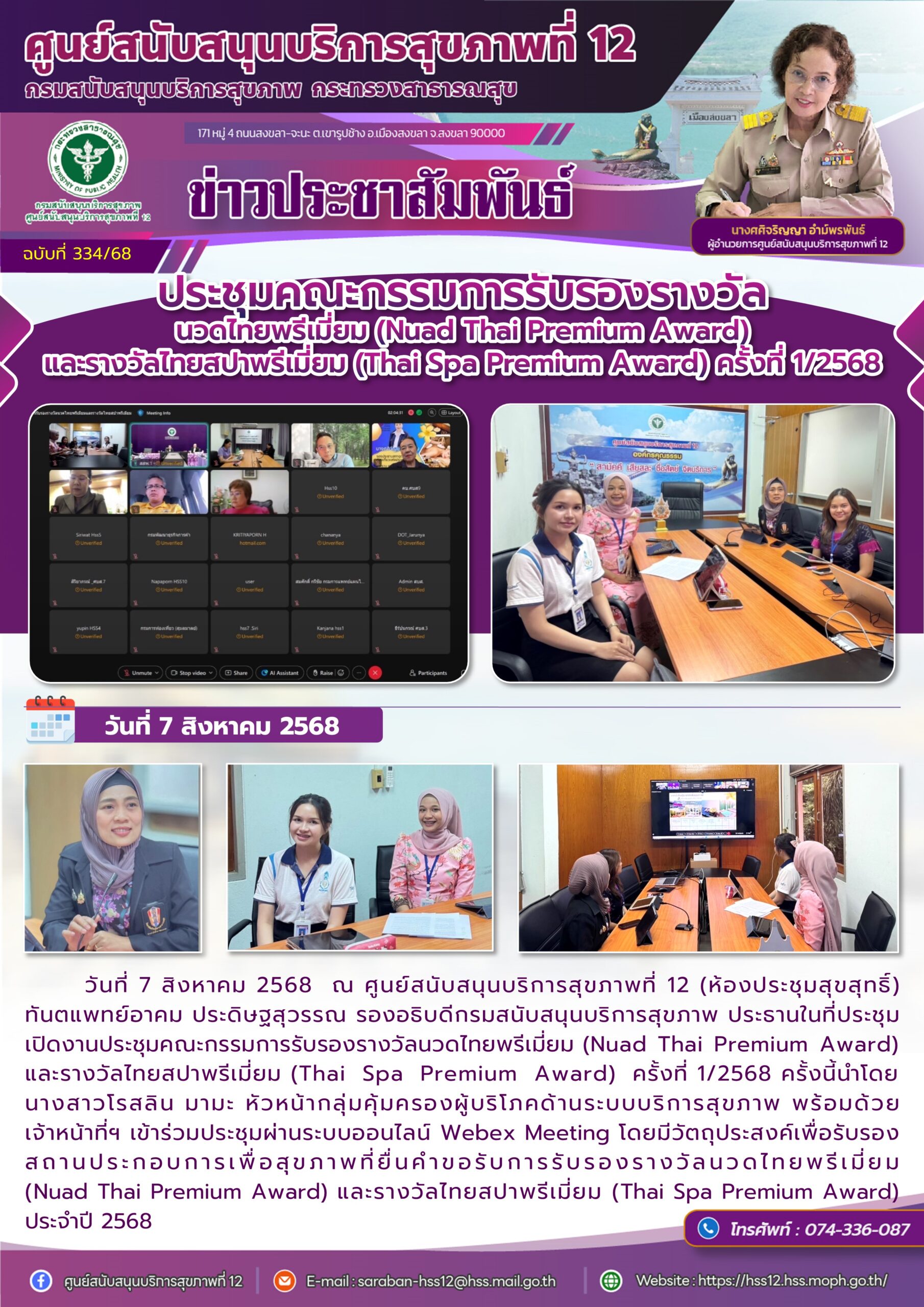 ประชุมคณะกรรมการรับรองรางวัลนวดไทยพรีเมี่ยม (Nuad Thai Premium Award) และรางวัลไทยสปาพรีเมี่ยม (Thai Spa Premium Award) ครั้งที่ 1/2568