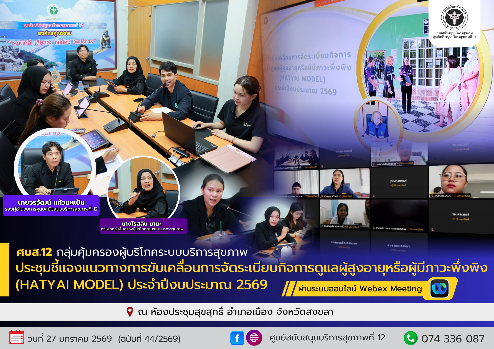 ศูนย์สนับสนุนบริการสุขภาพที่ 12 ขับเคลื่อน HATYAI MODEL ยกระดับมาตรฐานการดูแลผู้สูงอายุและผู้มีภาวะพึ่งพิง (HATYAI MODEL) ประจำปีงบประมาณ พ.ศ. 2569