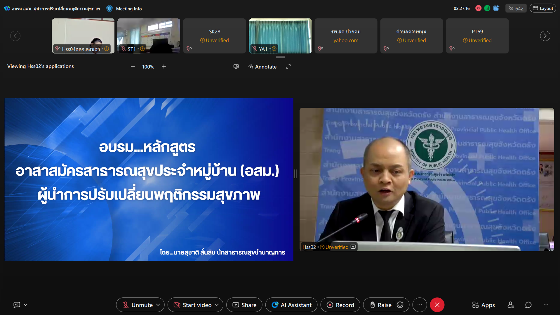 อำนวยการจัดอบรมหลักสูตร “อสม.ผู้นำการปรับเปลี่ยนพฤติกรรมสุขภาพ” เขตสุขภาพที่ 12 เพื่อเสริมสร้างความรู้ ความสามารถ และทักษะในการปฏิบัติงานของอาสาสมัครสาธารณสุขประจำหมู่บ้าน (อสม.)