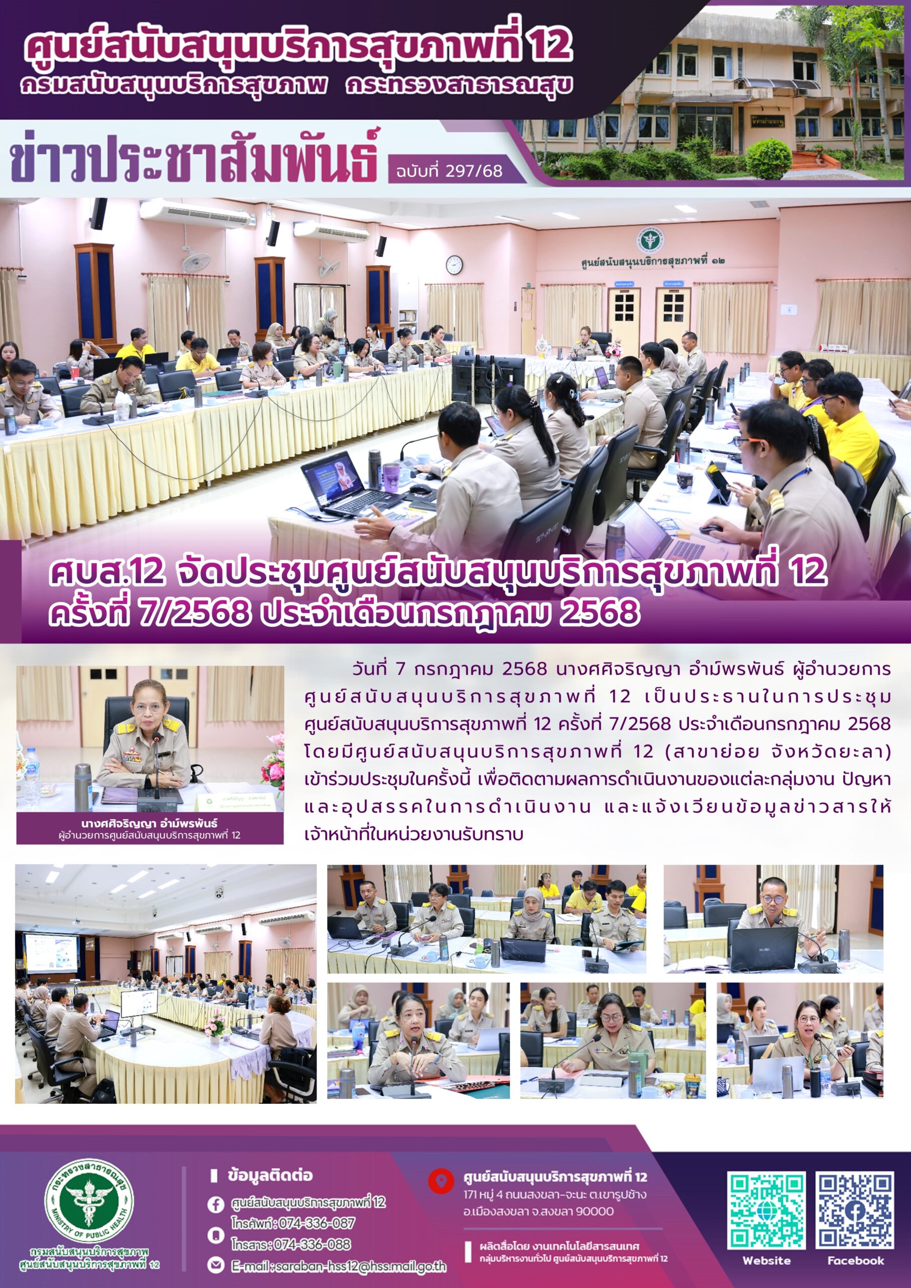 ศบส.12 จัดประชุมศูนย์สนับสนุนบริการสุขภาพที่ 12 ครั้งที่ 7/2568 ประจำเดือนมิถุนายน 2568