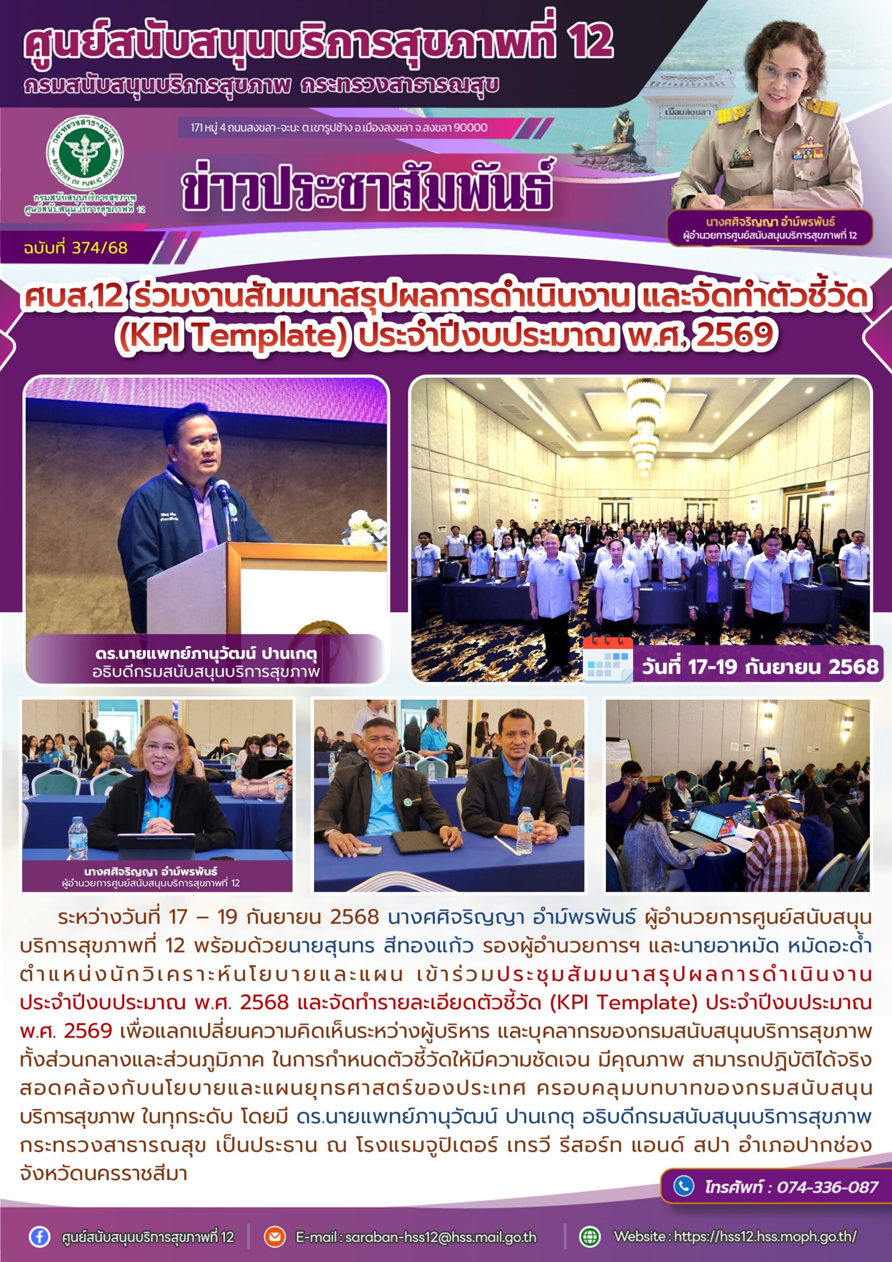 ศบส.12 ร่วมงานสัมมนาสรุปผลการดำเนินงาน และจัดทำตัวชี้วัด (KPI Template) ประจำปีงบประมาณ พ.ศ. 2569