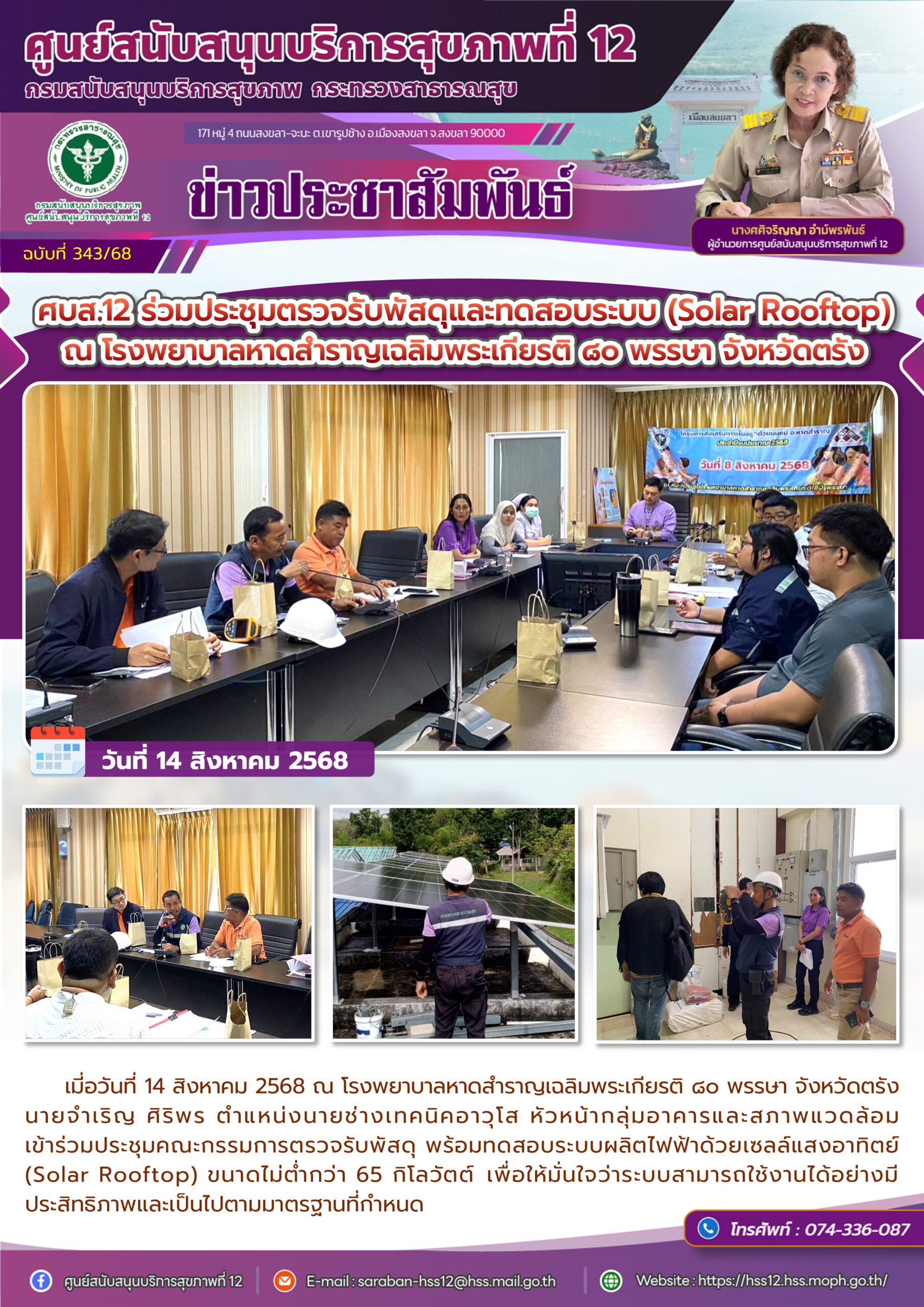 ศบส.12 ร่วมประชุมตรวจรับพัสดุและทดสอบระบบ (Solar Rooftop) ณ โรงพยาบาลหาดสำราญเฉลิมพระเกียรติ ๘๐ พรรษา จังหวัดตรัง