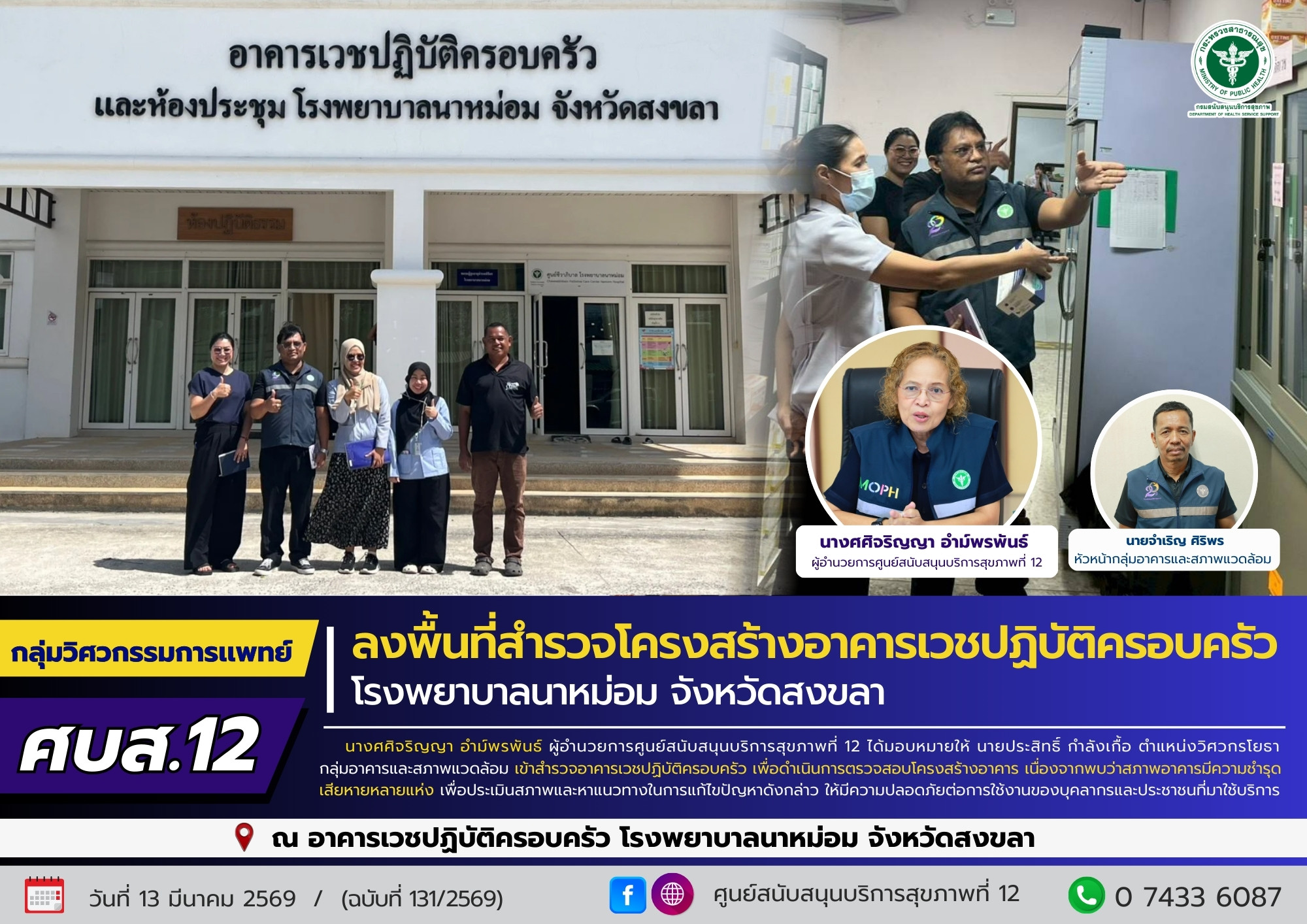 ศบส.12 ลงพื้นที่สำรวจโครงสร้างอาคารเวชปฏิบัติครอบครัวโรงพยาบาลนาหม่อม จังหวัดสงขลา