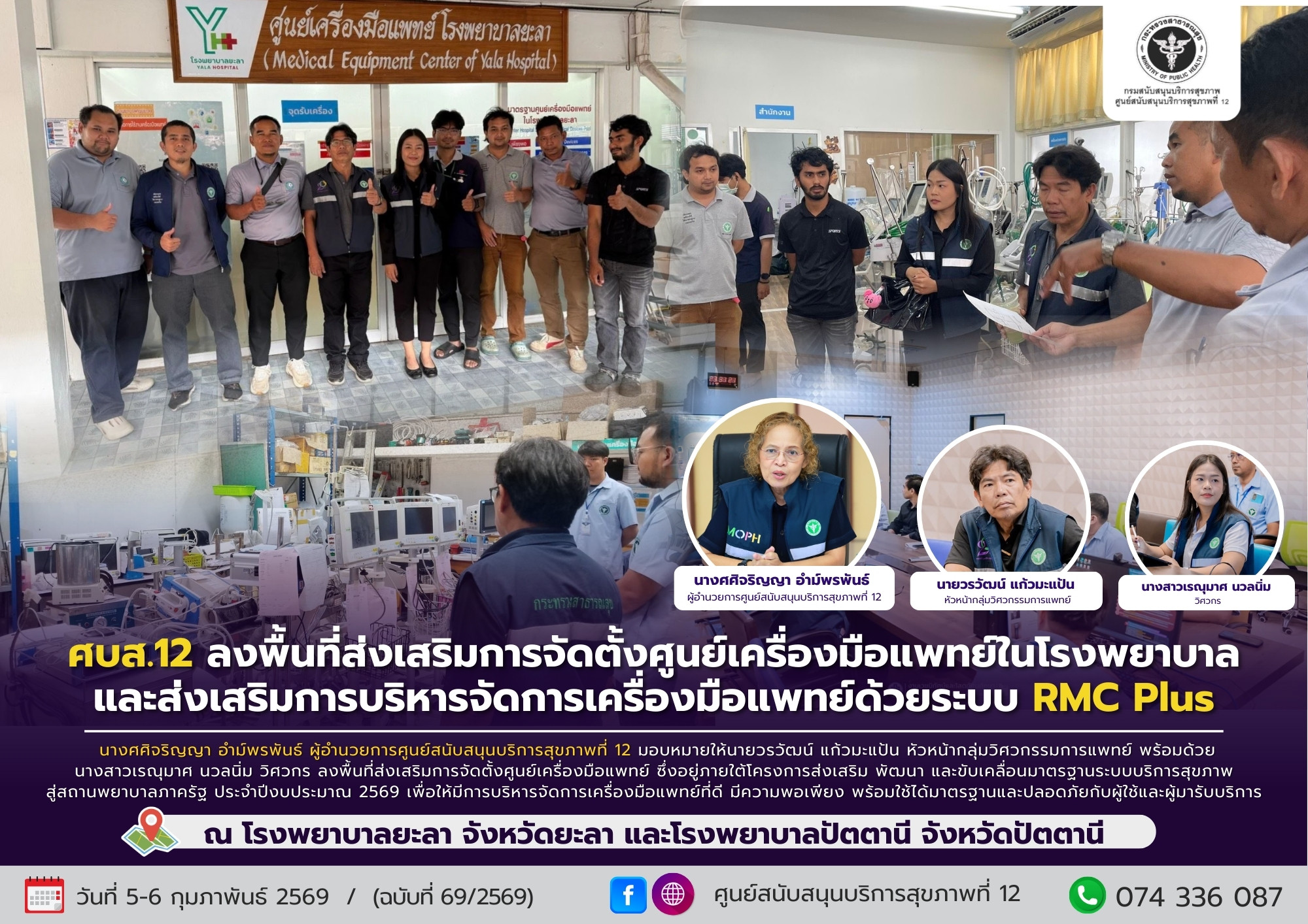 ศบส.12 ลงพื้นที่ส่งเสริมการจัดตั้งศูนย์เครื่องมือแพทย์ในโรงพยาบาล และส่งเสริมการบริหารจัดการเครื่องมือแพทย์ด้วยระบบ RMC Plus