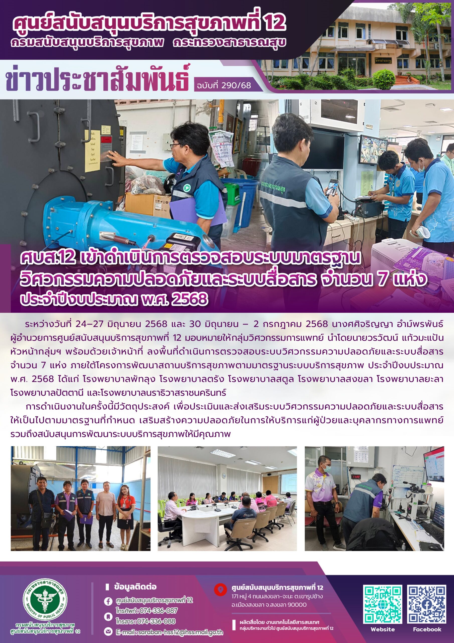 ศบส.12 เข้าดำเนินการตรวจสอบระบบมาตรฐานวิศวกรรมความปลอดภัยและระบบสื่อสาร จำนวน 7 แห่ง ประจำปีงบประมาณ พ.ศ. 2568