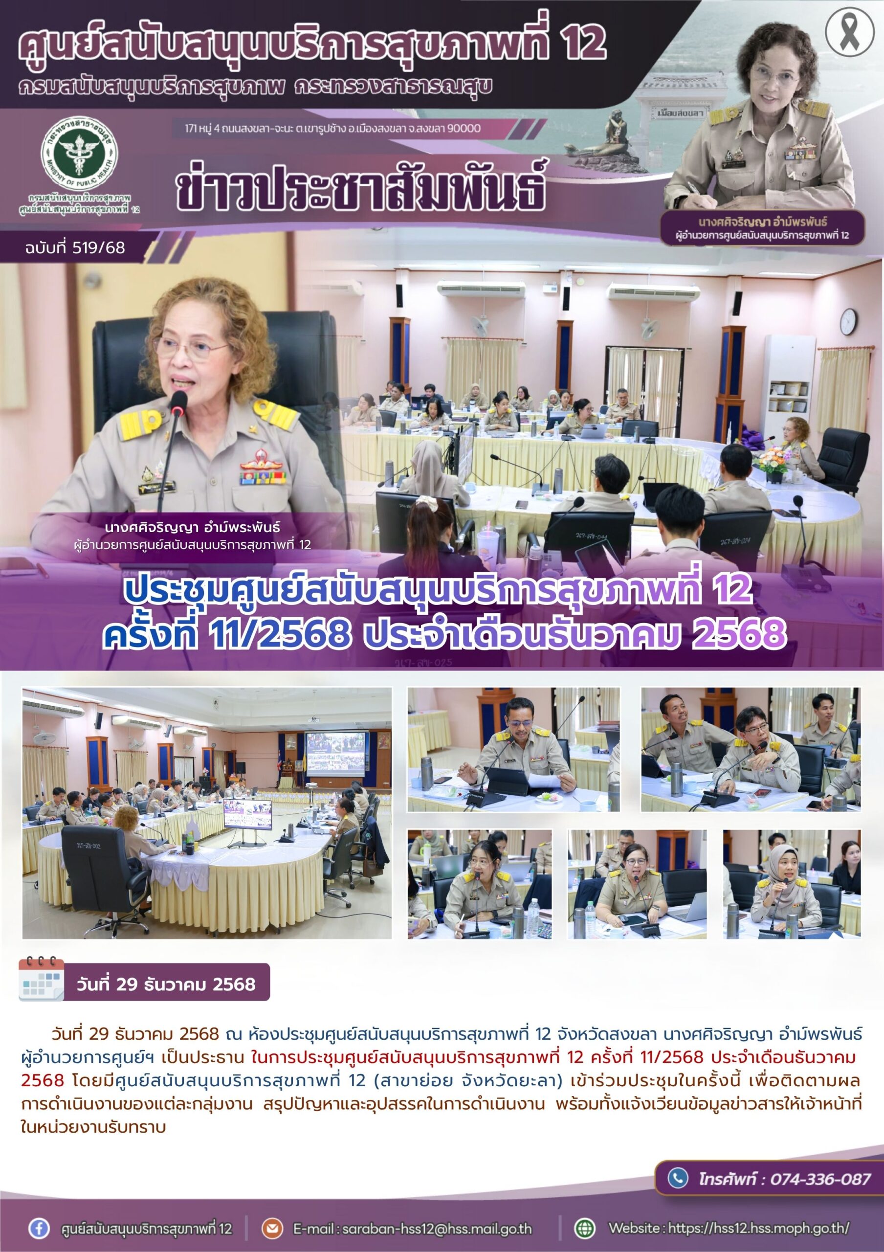 ประชุมศูนย์สนับสนุนบริการสุขภาพที่ 12 ครั้งที่ 11/2568 ประจำเดือนธันวาคม 2568