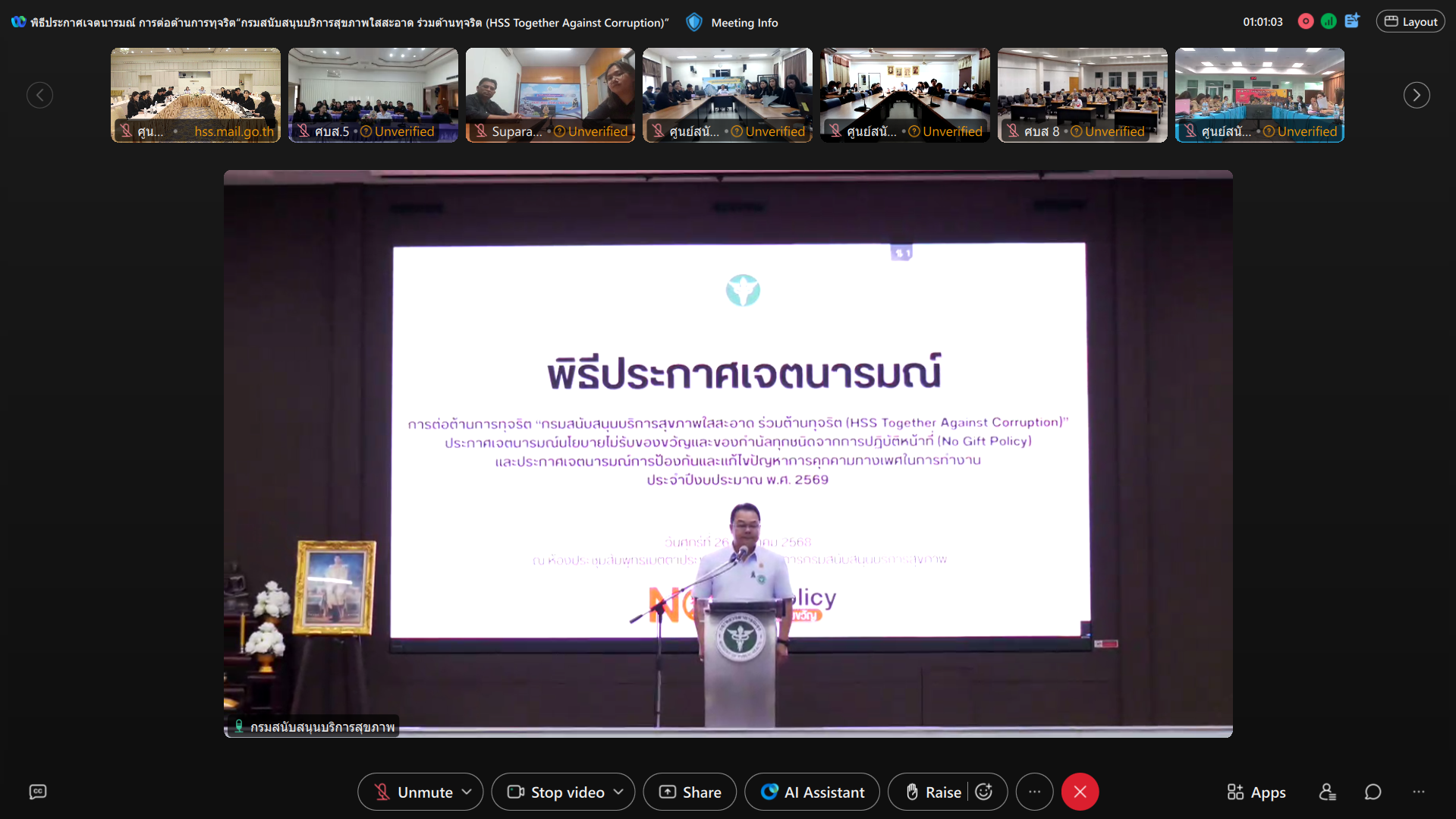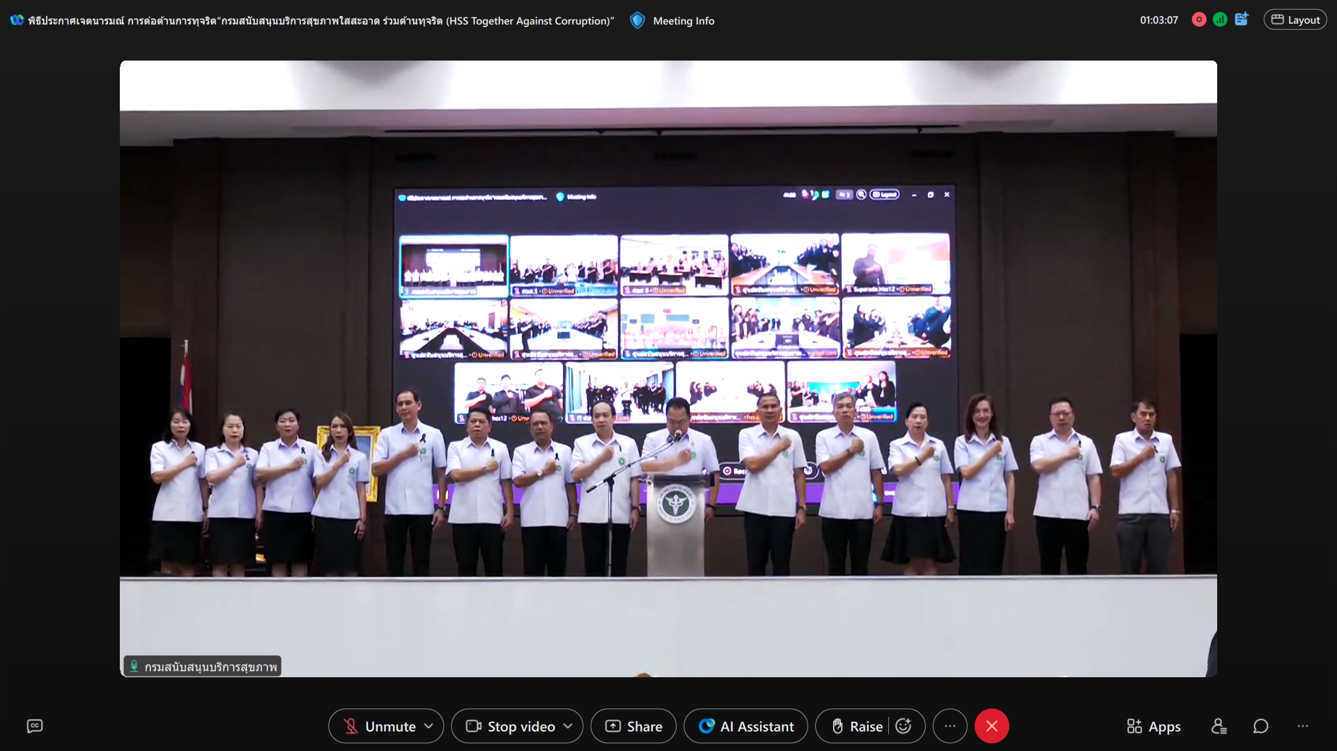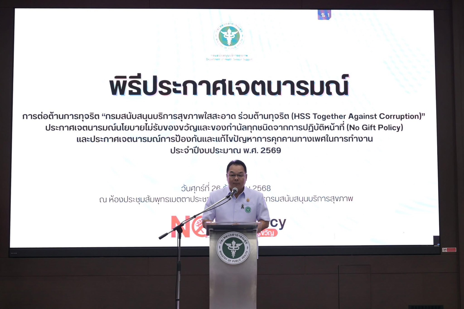 พิธีประกาศเจตนารมณ์การต่อต้านทุจริต ภายใต้แนวคิด “กรมสนับสนุนบริการสุขภาพใสสะอาด ร่วมต้านทุจริต (HSS Together Against Corruption)”