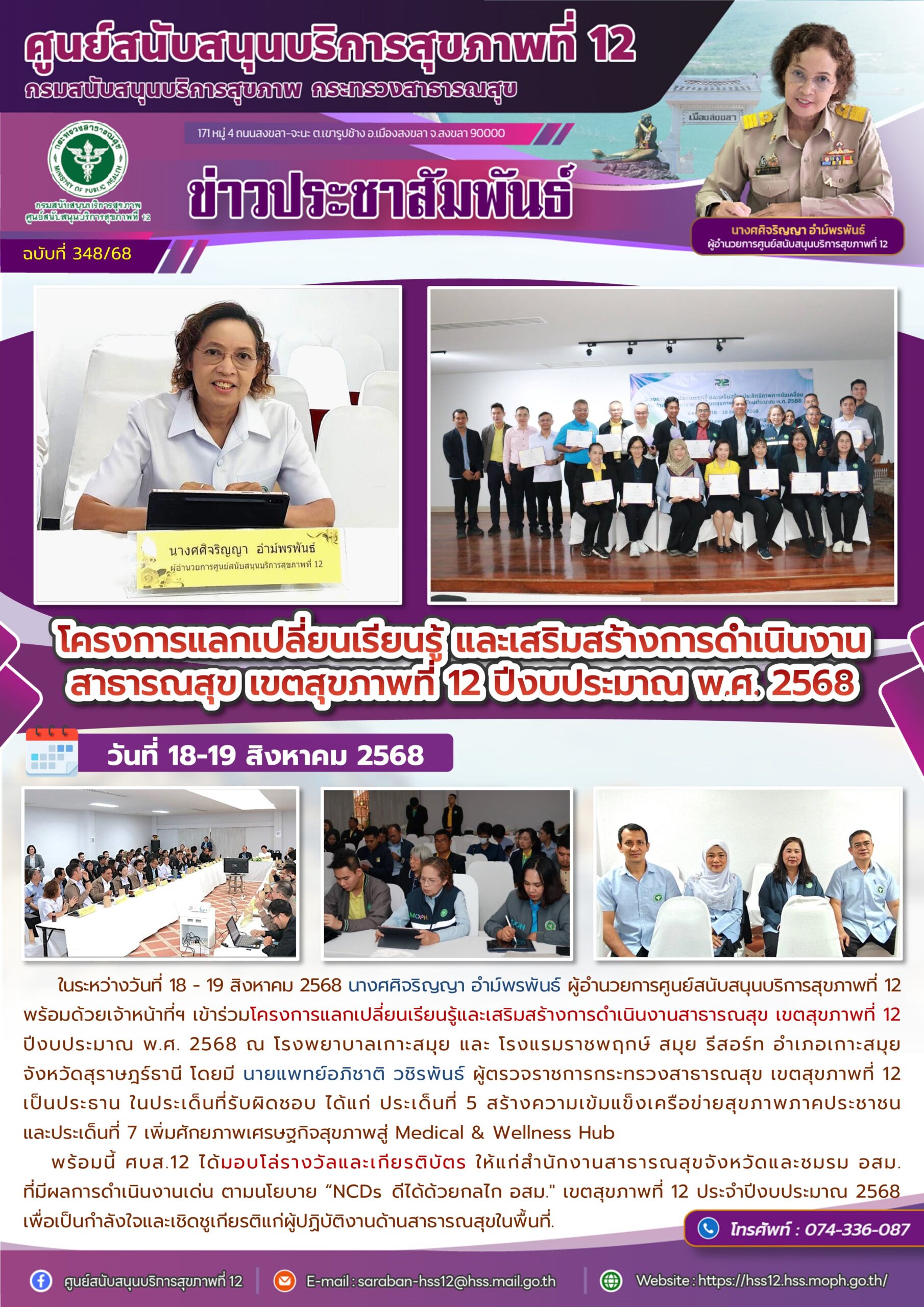 โครงการแลกเปลี่ยนเรียนรู้ และเสริมสร้างการดำเนินงานสาธารณสุข เขตสุขภาพที่ 12 ปีงบประมาณ พ.ศ. 2568