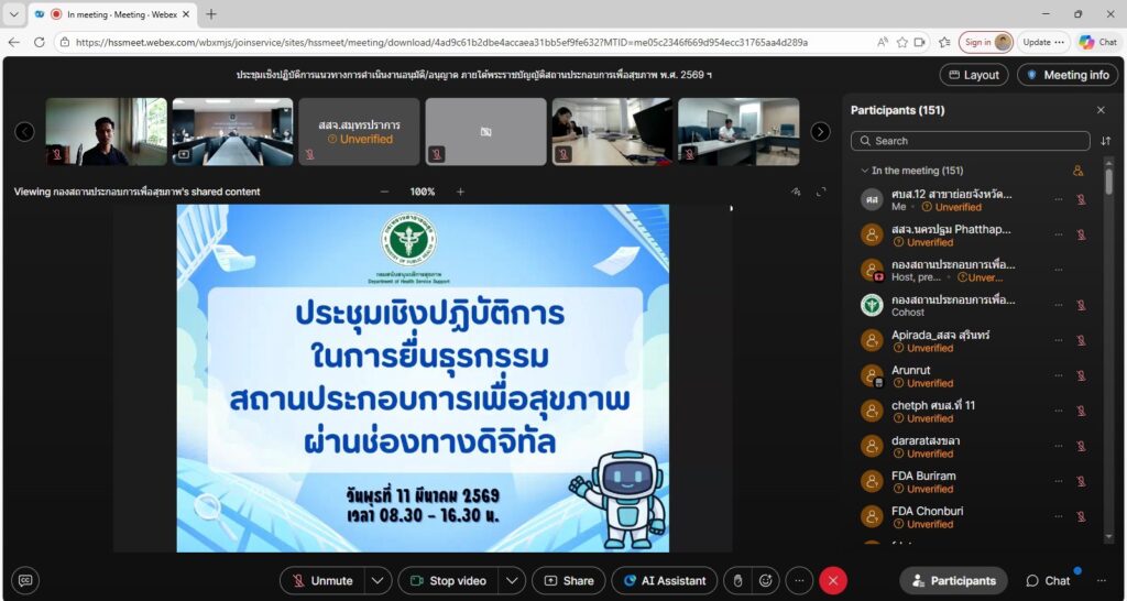ศบส.12 ร่วมประชุมเชิงปฏิบัติการ การพัฒนาและจัดทำแผนบริหารความเสี่ยงการทุจริต กรมสนับสนุนบริการสุขภาพ และระดับหน่วยงาน ประจำปีงบประมาณ พ.ศ. 2569” ผ่านระบบออนไลน์ Webex Meeting